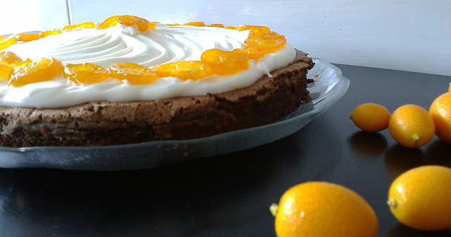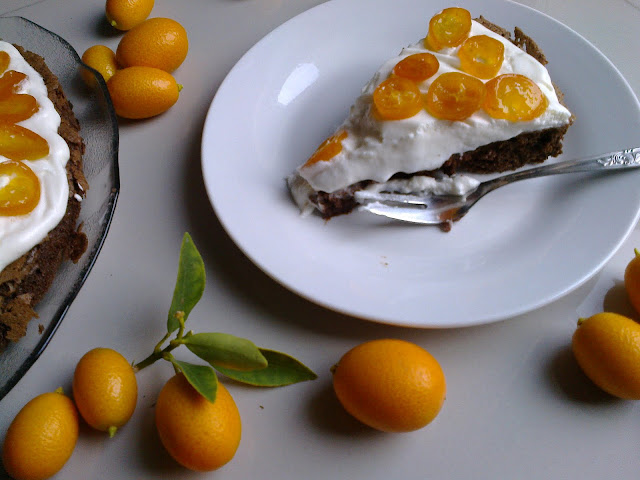 Eu sou uma adepta de sobremesas, É mesmo o que me dá maior prazer na cozinha e quando a árvore de kumquats começou a ficar repleta destes frutinhos laranja fiquei logo com a ideia de os utilizar numa sobremesa, disso não tinha dúvidas. O problema estava em saber como os usar de forma a evidenciar todo o seu esplendoroso aroma.